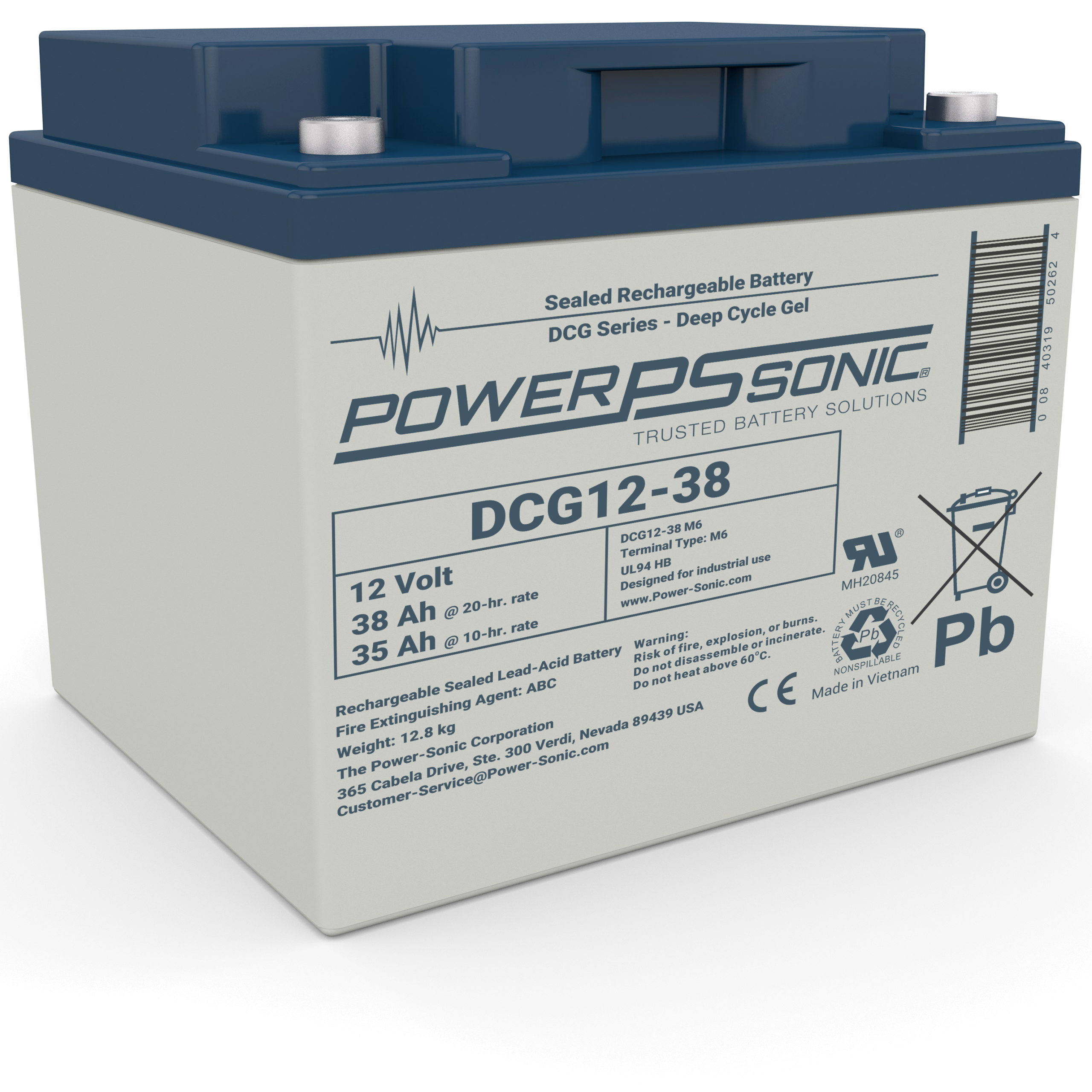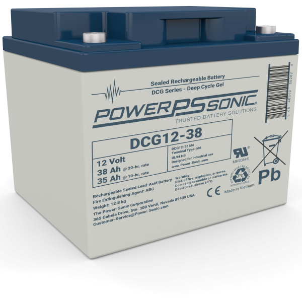 The DCG12-38 is part of our Gel VRLA range. This 12.0V and 35.0Ah battery provides deep discharge recovery and strong vibration resistance. Features include Gas Recombination, Gel Electrolyte, Power Volume Ratio, SLA ABS Case, SLA Cycle Life, and SLA Maintenance Free. These batteries are commonly used in Golf Carts, Medical, Mobility, Signaling (Air,Rail,Sea), Solar, Telecomm, and Wind requiring deep cycle endurance in harsh and high temperature environments. Backed by decades of expertise, Power-Sonic batteries are subject to stringent quality controls through each step of the manufacturing process to ensure compliance, performance consistency, and reliability.