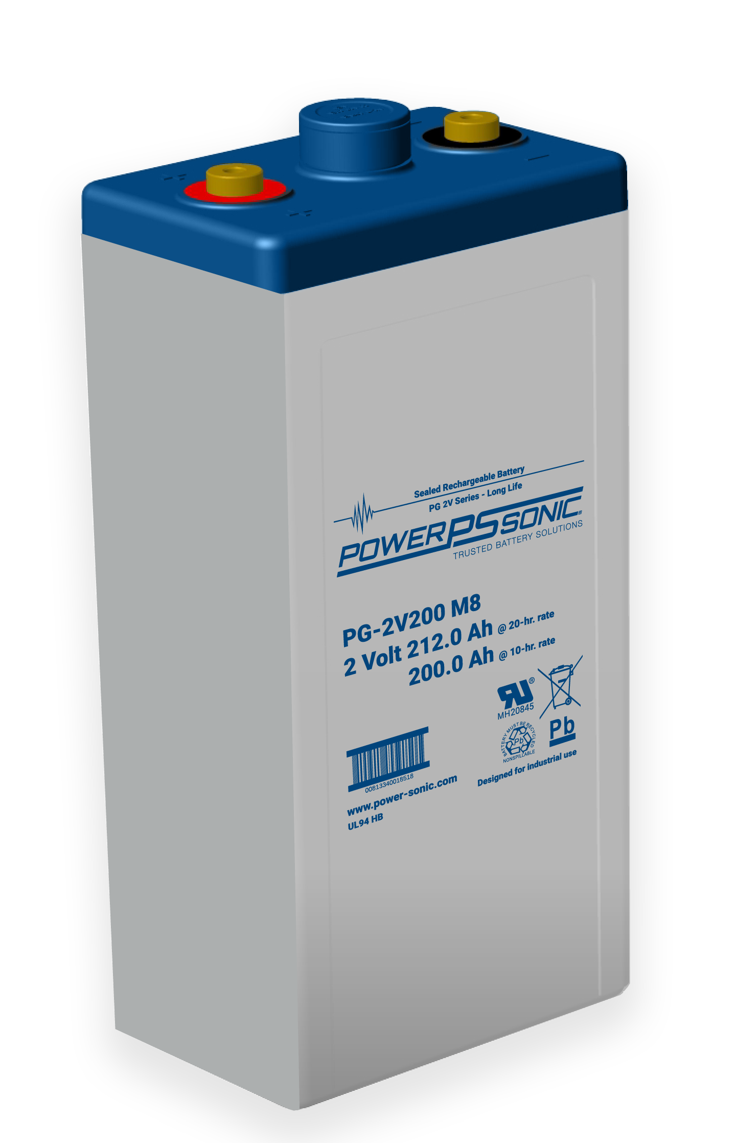 The PG-2V200 is part of our 2V Telecom and Utility Cells range. This 2.0V and 212.0Ah battery cell provides durability in light cyclic uses. Features include AGM Technology, Off Grid Capacity, SLA ABS Case, SLA Discharge Recovery, SLA Maintenance Free, and Thick Plate 10-12yr Design Life. These batteries are commonly used in Emergency Lighting, Fire Security, Solar, Telecomm, UPS, Utility, and Wind requiring demanding standby power. Backed by decades of expertise, Power-Sonic batteries are subject to stringent quality controls through each step of the manufacturing process to ensure compliance, performance consistency, and reliability.
