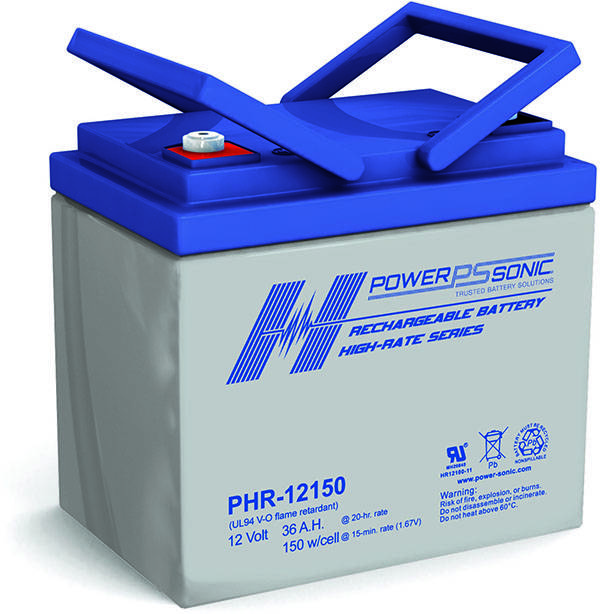 The PHR-12150 FR is part of our Rechargeable Sealed Lead Acid Battery range of PHR Series often referred to as SLA or VRLA (Valve Regulated Lead Acid) are designed for high-rate discharge applications. The 12.0V 154.1A high-rate battery has Dual Paste, High-Rate UPS Application, Plate Pasting, SLA ABS Case, and SLA Maintenance Free. All Power-Sonic batteries are subject to stringent quality controls through each step of the manufacturing process to ensure consistency and reliability.