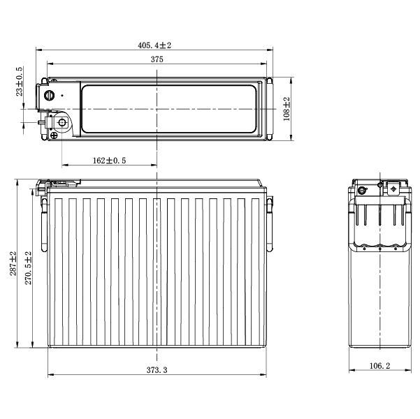 The PL-121040FT is part of our Pure Lead range. This 12.0V and 104.0Ah battery provides a space efficient design and simplified installation. Features include AGM Technology, Front Terminal, Long Shelf Life, Power Volume Ratio, SLA ABS Case, SLA Maintenance Free, and TPPL 20yr Design Life. These batteries are commonly used in Edge Data Center, Emergency Lighting, Telecomm, UPS, and Utility requiring long service life and high-rate discharge capability. Backed by decades of expertise, Power-Sonic batteries are subject to stringent quality controls through each step of the manufacturing process to ensure compliance, performance consistency, and reliability.