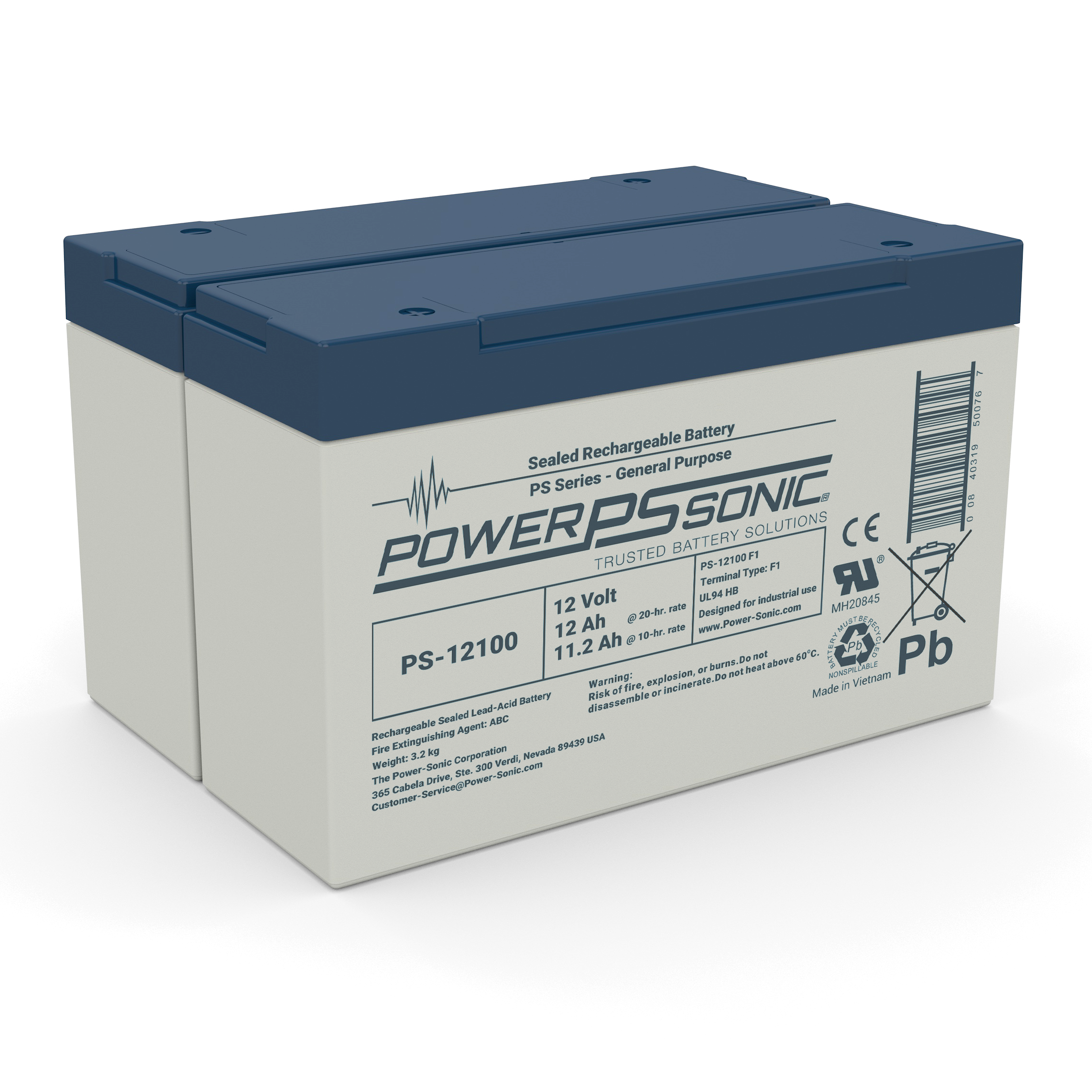 The PS-12100 is part of our General Purpose SLA range. This 12.0V and 11.2Ah battery provides dependable power for general purpose and standby uses. Features include AGM Technology, Gas Recombination, Power Volume Ratio, SLA ABS Case, and SLA Maintenance Free. These batteries are commonly used in Emergency Lighting, Fire Security, General Purpose, Medical, Signaling (Air,Rail,Sea), Solar, Telecomm, UPS, Utility, and Wind requiring reliable, light cyclic backup power. Backed by decades of expertise, Power-Sonic batteries are subject to stringent quality controls through each step of the manufacturing process to ensure compliance, performance consistency, and reliability.