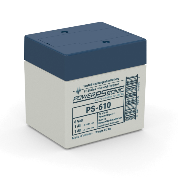 The PS-610 is part of our General Purpose SLA range. This 6.0V and 0.95Ah battery provides dependable power for general purpose and standby uses. Features include AGM Technology, Gas Recombination, Power Volume Ratio, SLA ABS Case, and SLA Maintenance Free. These batteries are commonly used in Emergency Lighting, Fire Security, General Purpose, Medical, Signaling (Air,Rail,Sea), Solar, Telecomm, UPS, Utility, and Wind requiring reliable, light cyclic backup power. Backed by decades of expertise, Power-Sonic batteries are subject to stringent quality controls through each step of the manufacturing process to ensure compliance, performance consistency, and reliability.