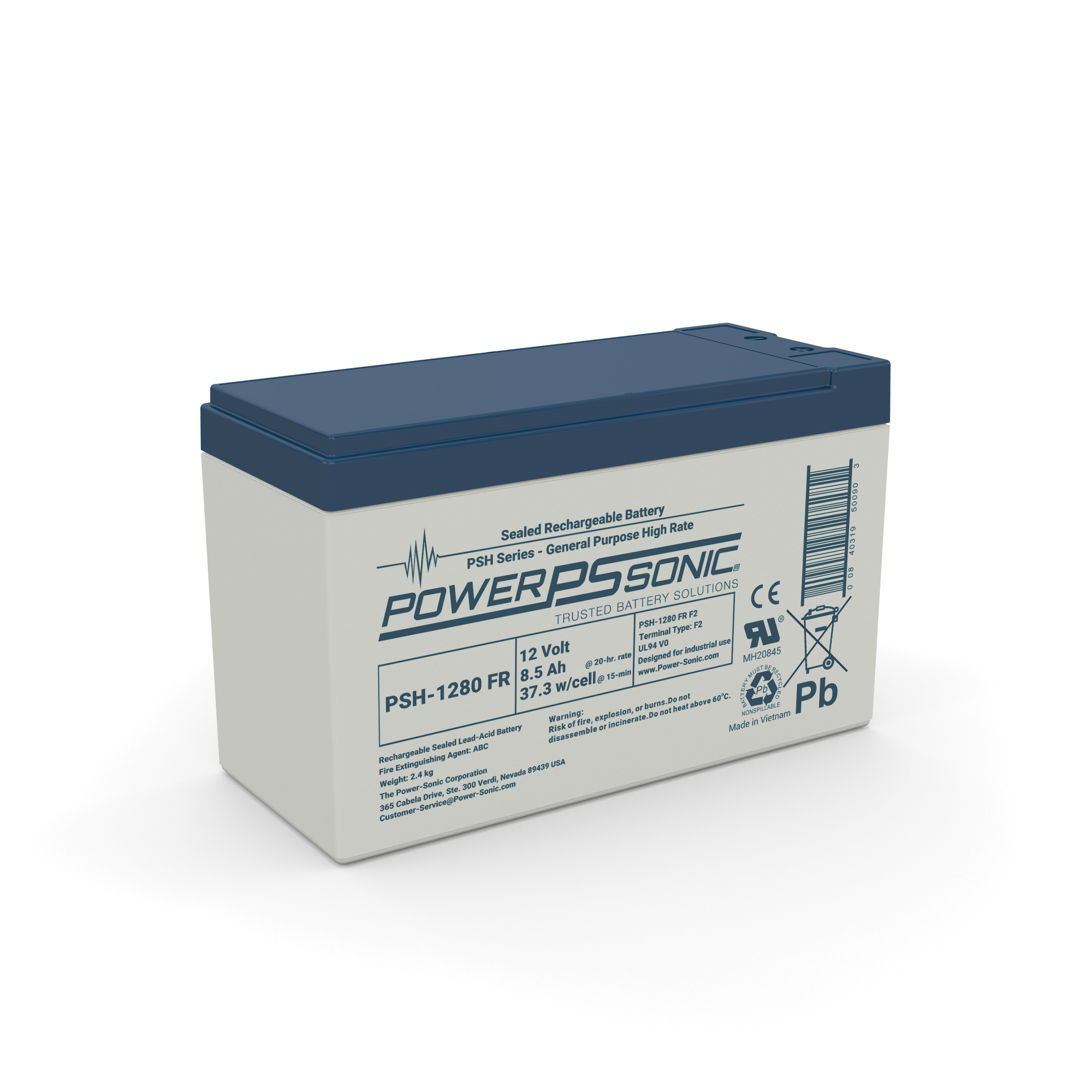 The PSH-1280 FR is part of our High Rate Discharge Batteries range. This 12.0V and 8.5Ah battery provides high rate discharge and dependable performance. Features include AGM Technology, High-Rate UPS Application, Power Volume Ratio, SLA ABS Case, and SLA Maintenance Free. These batteries are commonly used in Edge Data Center, Fire Security, Telecomm, and UPS requiring rapid discharge in standby and light cyclic use. Backed by decades of expertise, Power-Sonic batteries are subject to stringent quality controls through each step of the manufacturing process to ensure compliance, performance consistency, and reliability.