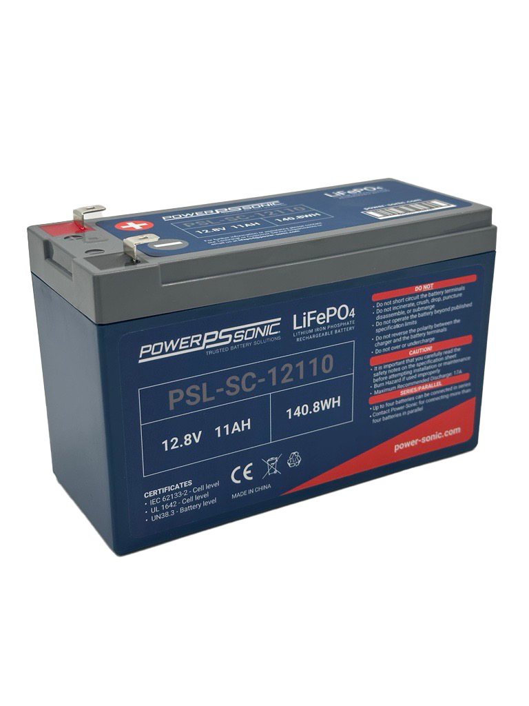 The PSL-SC-12110 is part of our Series Capable Rechargeable Lithium (LiFePO4) range. This 12.8V and 11.0Ah battery provides opportunity for increased voltage and capacity. Features include BMS Optimization, Lightweight Lithium, Lithium 2X Power, Lithium 40% Lighter, Lithium Cycle Life, Lithium Maintenance Free, Lithium Powersport Performance, Lithium Safety, Not For Starting, and Serial/Parallel Benefit. These batteries are commonly used in Edge Data Center, Medical, Mobility, Solar, Sport Recreation, Transport, and Wind requiring series capability. Backed by decades of expertise, Power-Sonic batteries are subject to stringent quality controls through each step of the manufacturing process to ensure compliance, performance consistency, and reliability.